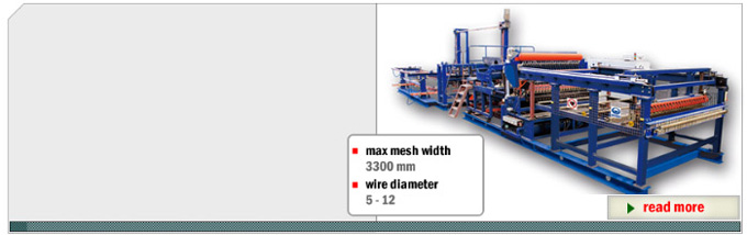 CNC wheel-step design (patent) Direct circuit to enhance welding quality (patent) Line wire vertical straightening system (patent) Automatic mesh turning, stacking and conveying system Welding pressure stepless adjustation (patent) Automatically high speed cross wire feeding system High speed mesh cutting system, 120 times per min Control systems: SIEMENS, MITSUBISHI, YASKAWA, SCHNEIDER, MOLLER ![]() |